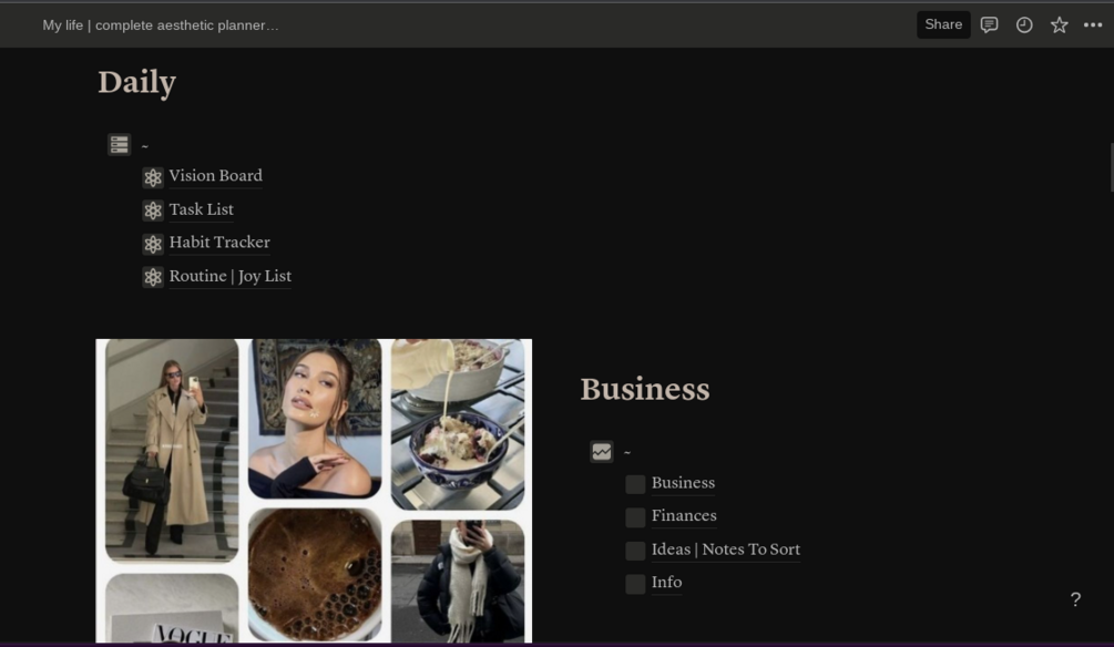 Are you ready to take control of your life and turn your dreams into reality? Look no further than our meticulously designed Notion template - "My Life." This comprehensive and aesthetic planner and organizer template is here to transform your life, one organized step at a time. Don't wait any longer to take control of your life and manifest your dreams. Try "My Life | Complete Aesthetic Planner and Organizer Notion Template" today and embark on a journey to a more organized, productive, and fulfilling life. Your dream life is just a template away!